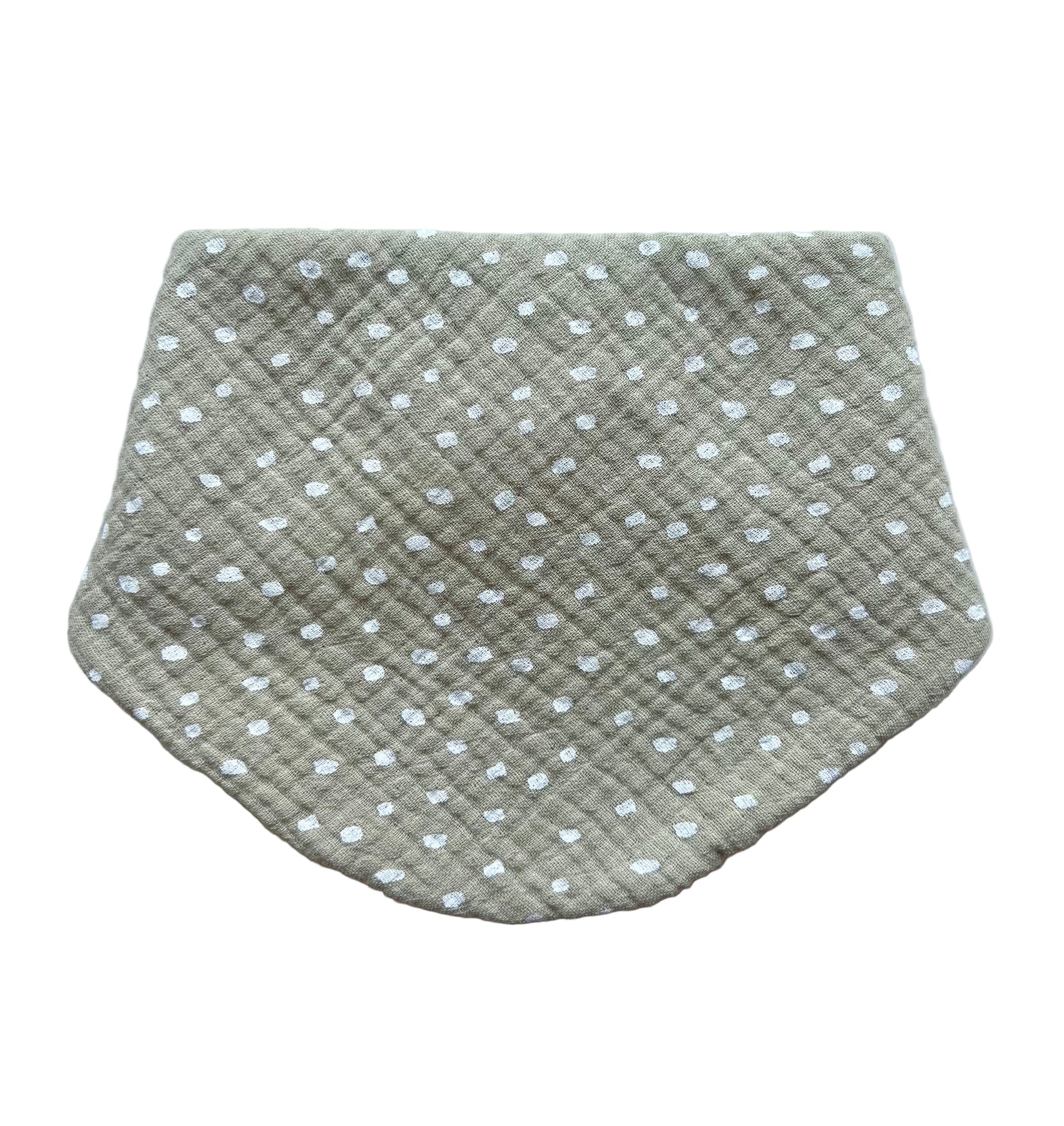 Gorgeous double layer muslin bib featuring green speckled side and stunning olive reverse