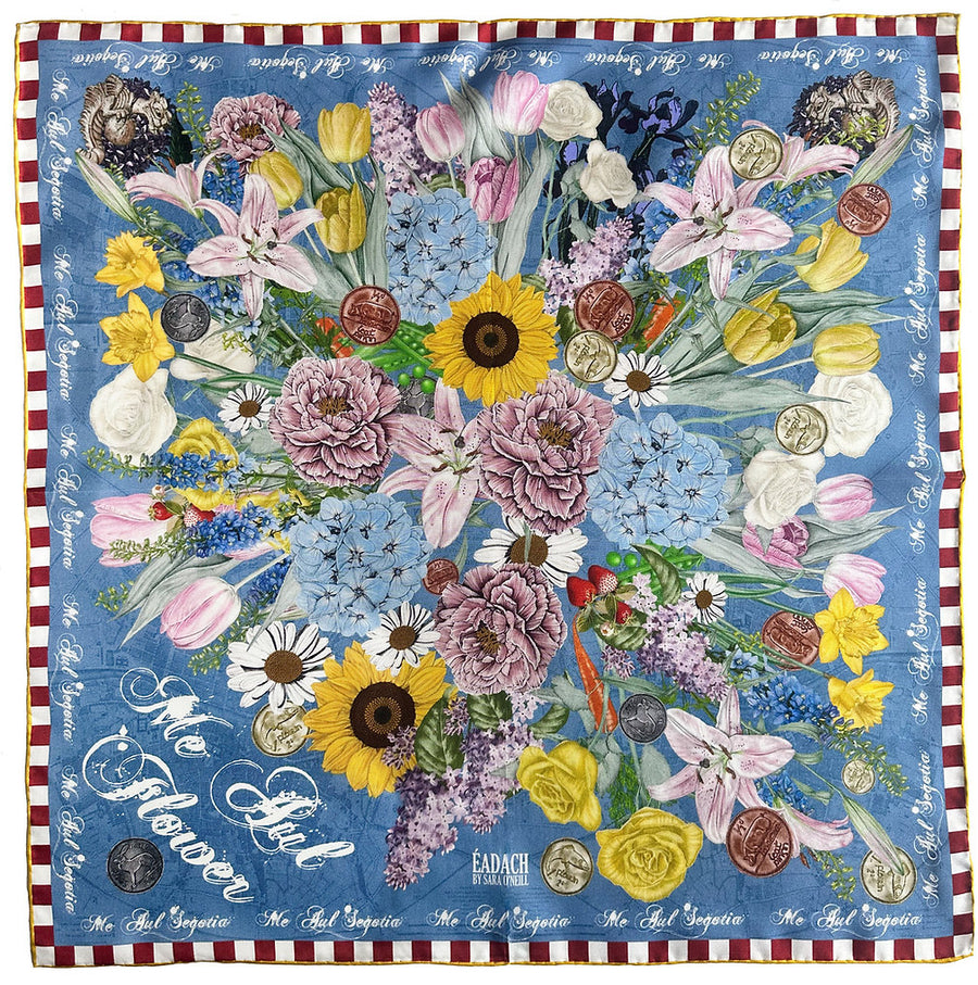 Bold, romantic, and unapologetically Irish, the Me Aul Flower silk scarf by Eadach celebrates strength, femininity, and the vibrant spirit of Irish women. Designed by artist Sara O’Neill, this 70cm square scarf features richly layered florals, vintage-inspired illustrations, and luxurious silk with hand-finished edges.