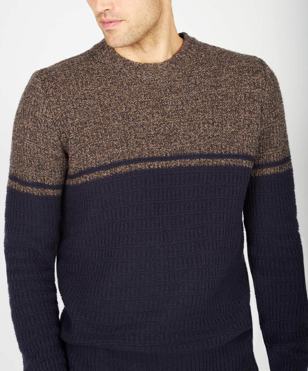 Colour Block Crew Neck – Shadow Marl & Midnight Blue